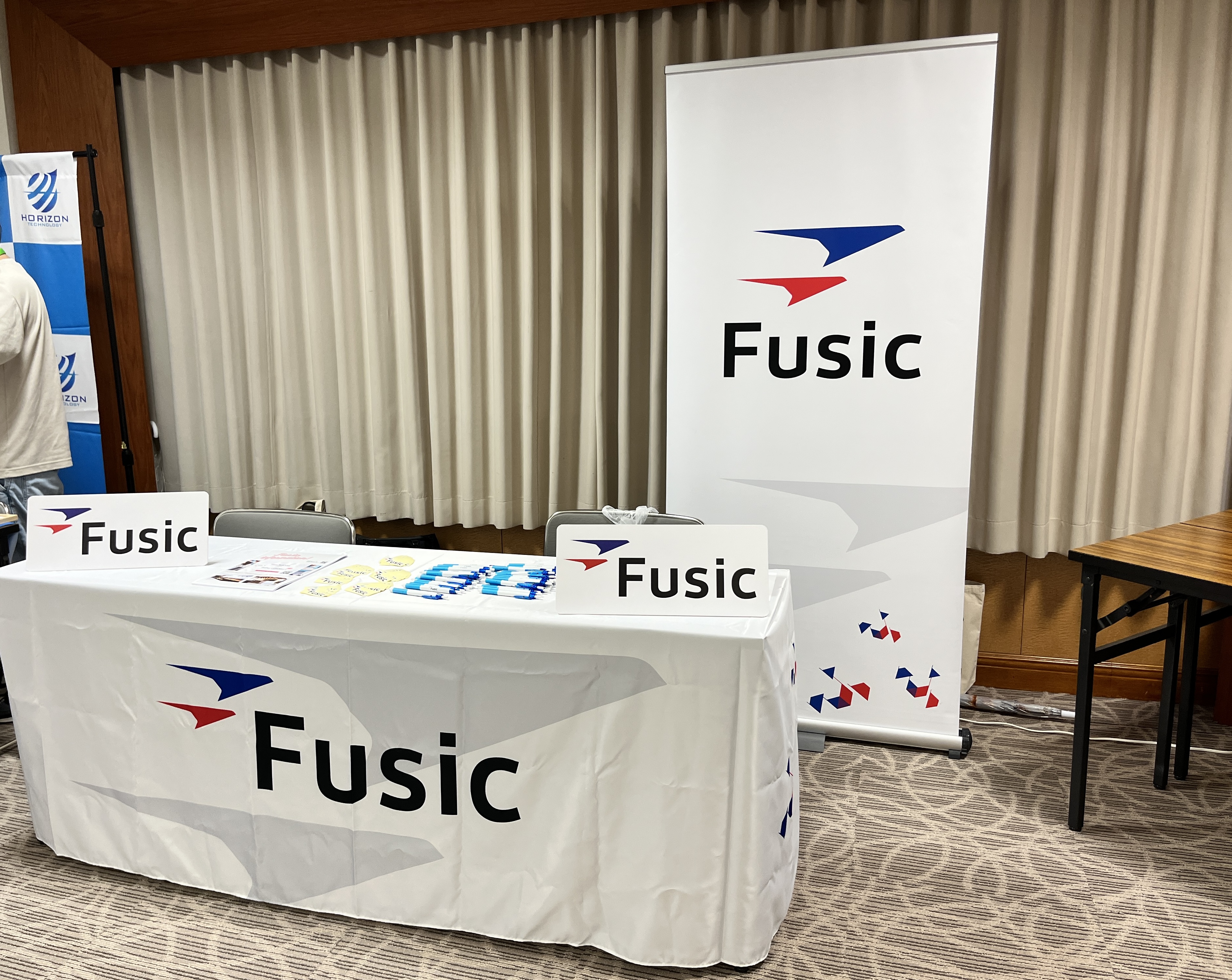 ▶︎Fusicホール入口には、どどーんと当社のロゴが!