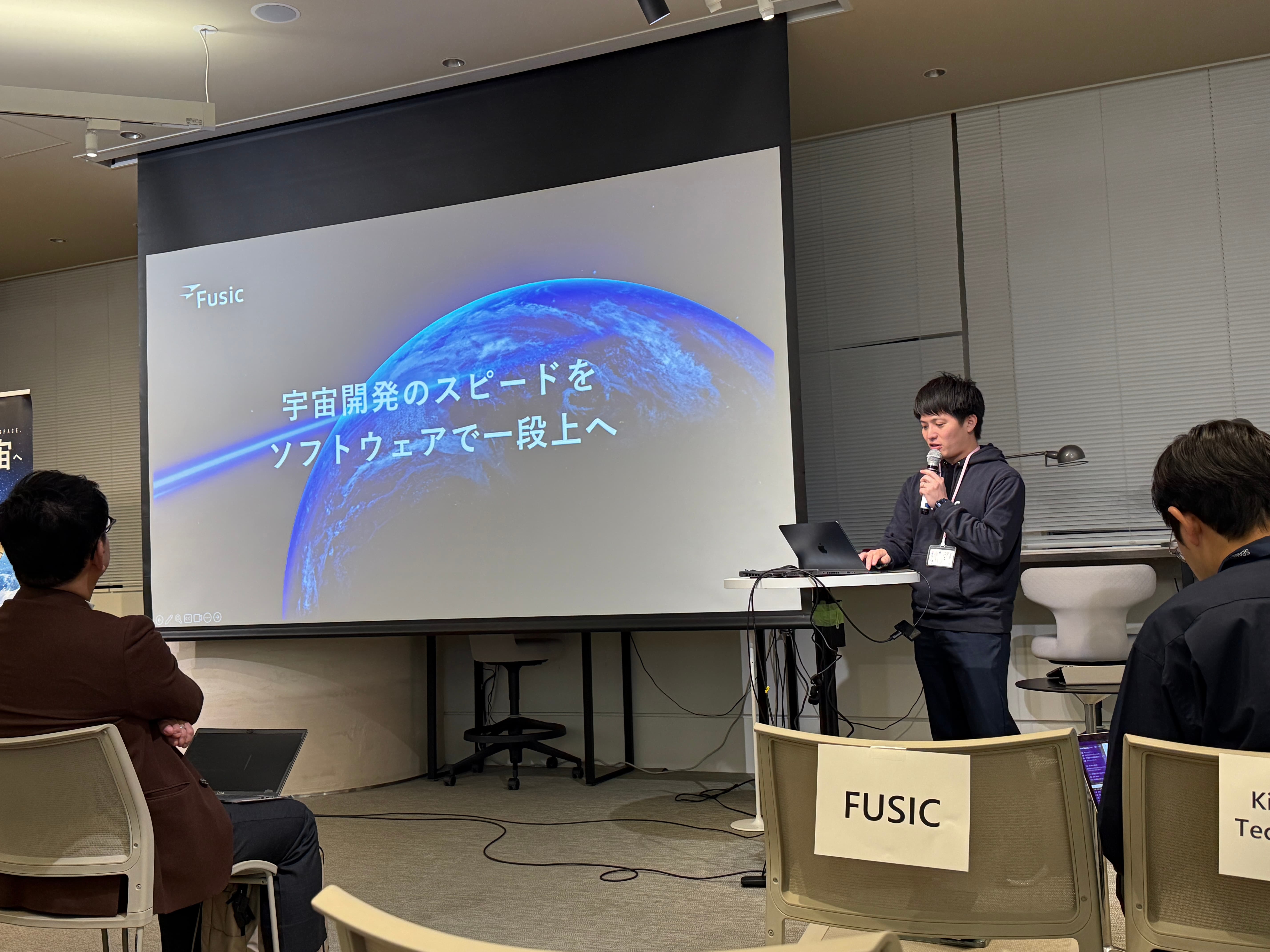 その後、県内宇宙関連事業者6社によるプレゼンテーションが実施され、当社の吉野は「宇宙 × クラウドで宇宙産業をアップデートするFusic」というタイトルで、当社の事業概要や宇宙ビジネスにおける当社の取り組みを紹介しました。 衛星データ解析、通信、AI、ロボティクスなど、多様な技術を持つ企業が集まり、福岡が持つ技術力とネットワークの広がりを改めて発信する機会となりました。