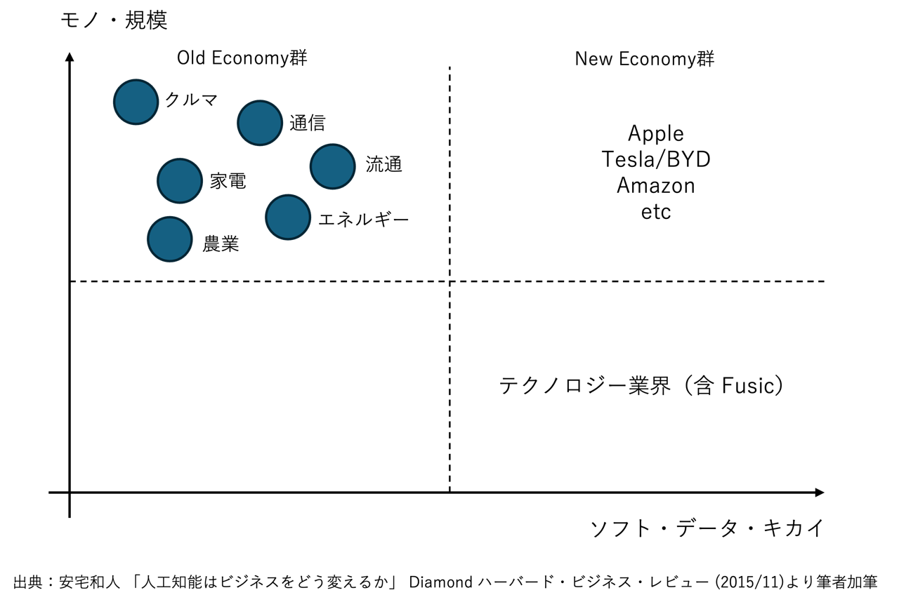 Fusicは、これまで側面からOld Economy群がNew Economyに変革するための支援をしてきました。ただ、New Economyへ変革を遂げた企業を見ると、その多くは元々その業界にいたわけではなく、固定概念に捉われず自由な発想で市場を刷新したテクノロジー企業が多いことがわかります。であるならば、私たち自身がOld Economyに飛び込み、New Economyへの刷新を図ることができるのではないか、それがもう1つの意図です。