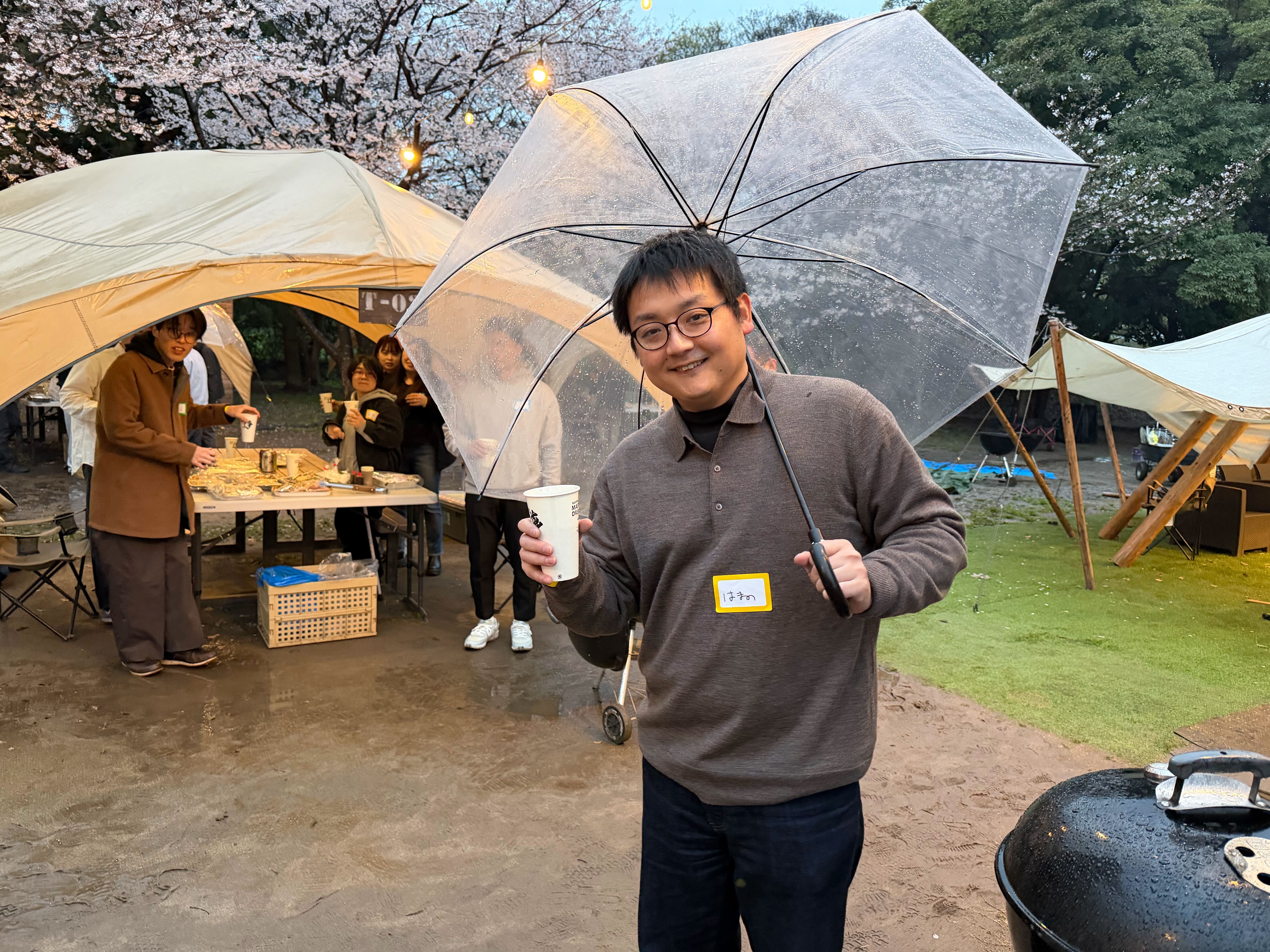 雨の中でも盛り上がる、Fusicのお花見