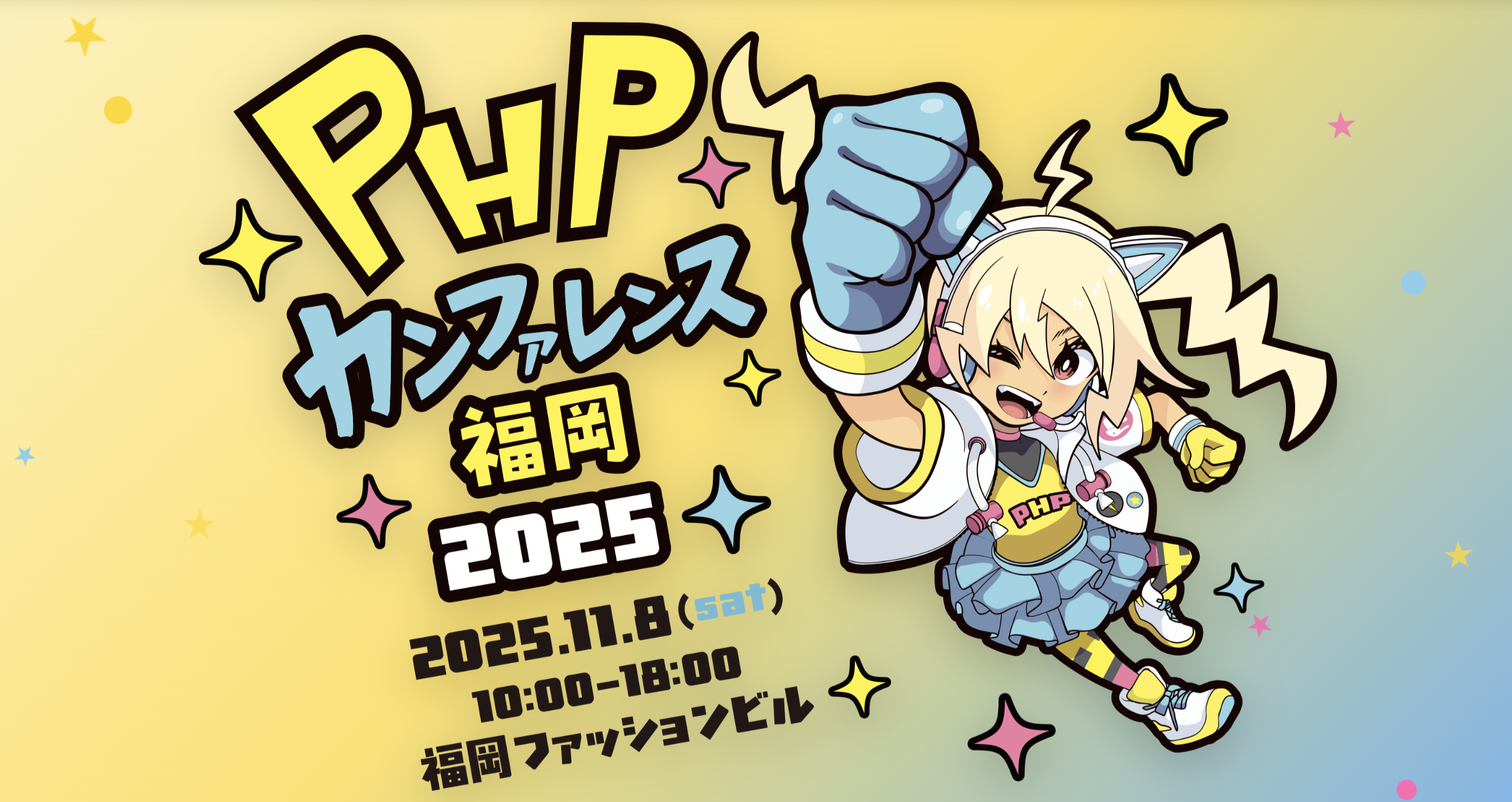 福岡・九州のPHPer(PHP開発者)と全国のPHPerが交流するイベント「PHPカンファレンス福岡2025」が、2025年11月8日(土)に開催されます。当社はプラチナスポンサーとして協賛するとともに、当社エンジニアが3名登壇いたします。