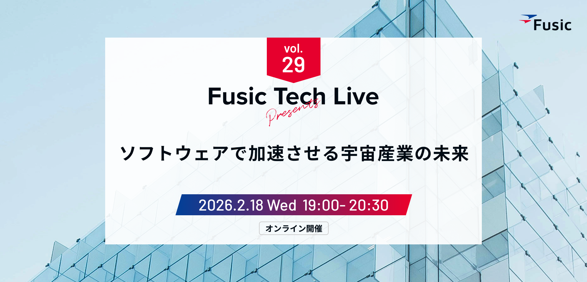 2026年2月18日(水)に、「ソフトウェアで加速させる宇宙産業の未来」をテーマに、技術イベント『Fusic Tech Live』を開催します。