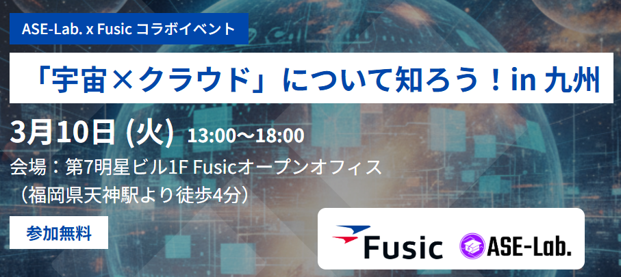 2026年3月10日(火)に、宇宙学生団体ASE-Lab.とのコラボイベント『「宇宙×クラウド」ワークショップ in 九州』を開催します。